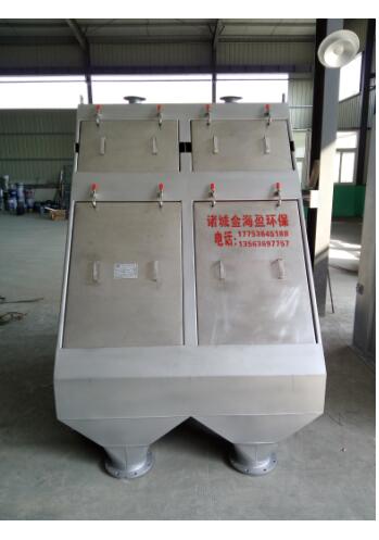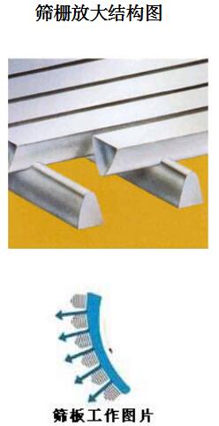 YHS型溢流式微縫過濾機的工作原理是:需要被過濾的液體通過液位高度或低揚程水泵送入背部的蓄水箱調節穩流后,通過溢流堰溢流到篩柵上,在液體下落時借助自重,水被高密度的篩柵層層切割過濾,穿透篩板與原料分離。達到過濾分離的目地。固形物被截留在篩柵表面,借助液體的潤滑滾動下來,篩柵不斷的受到液體的沖刷,使篩柵表面起到自凈作用,從而完成篩柵連續自凈和固形物不斷收集的全過程。收集在篩柵表面的物料從前面底部的排放口排出,根據物料種類和出料含水要求,固形物出料口可跟配網帶式或者螺旋擠壓脫水設備,強制加壓脫水。