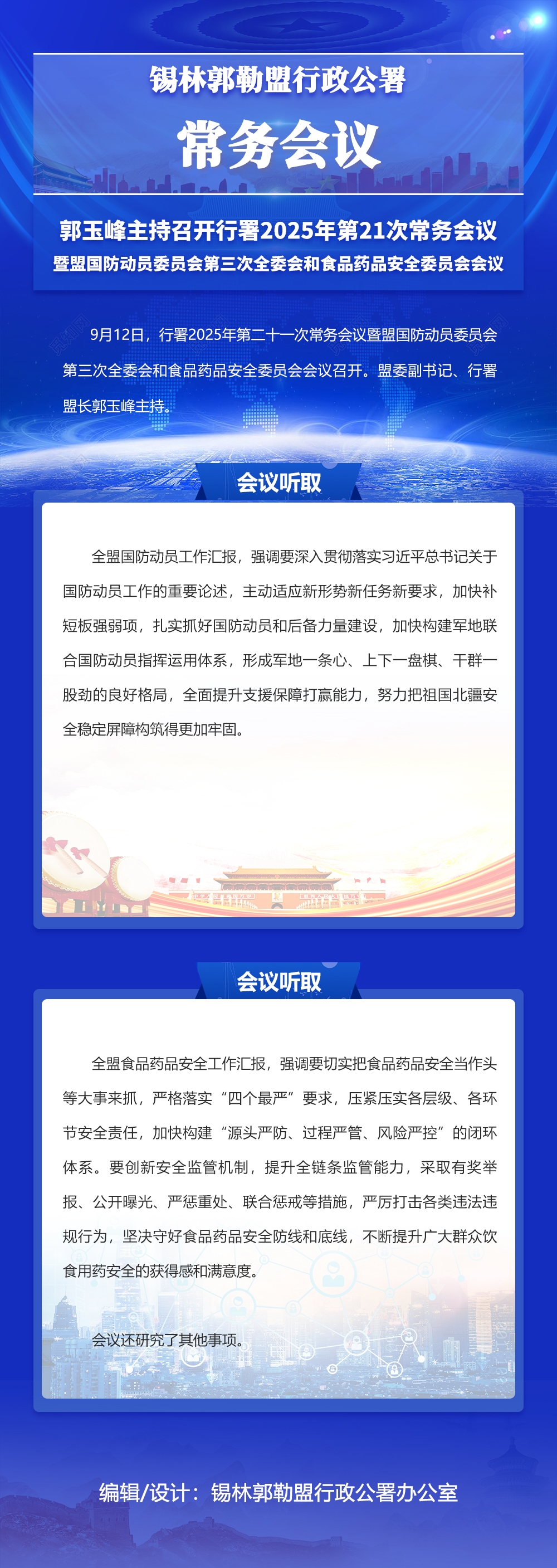 圖解:郭玉峰主持召開行署2025年第21次常務會議暨盟國防動員委員會第三次全委會和食品藥品安全委員會會議