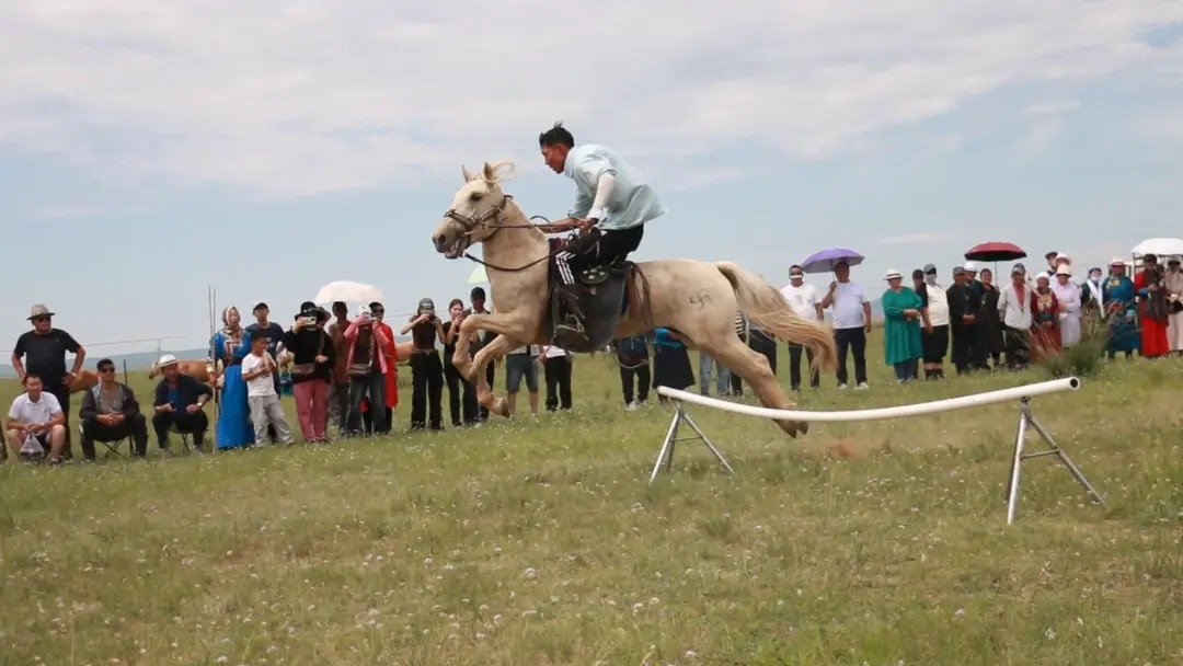 本次那達(dá)慕還設(shè)置了15公里黃驃馬耐力賽、黃驃馬駒速度賽和馬上拾哈達(dá)、繞桶賽、障礙賽、騎馬射箭等速度與競技類比賽,騎手們駕馭著黃驃馬在賽場上馳騁,展現(xiàn)高超的馬術(shù)技巧和人馬合一的視覺盛宴。賽場上,來自西烏珠穆沁旗的21歲的黃驃馬成為了本次黃驃馬文化那達(dá)慕的亮點(diǎn)之一,據(jù)了解,本次那達(dá)慕15公里黃驃馬耐力賽也將是這匹21歲黃驃馬一生當(dāng)中最后一場比賽。