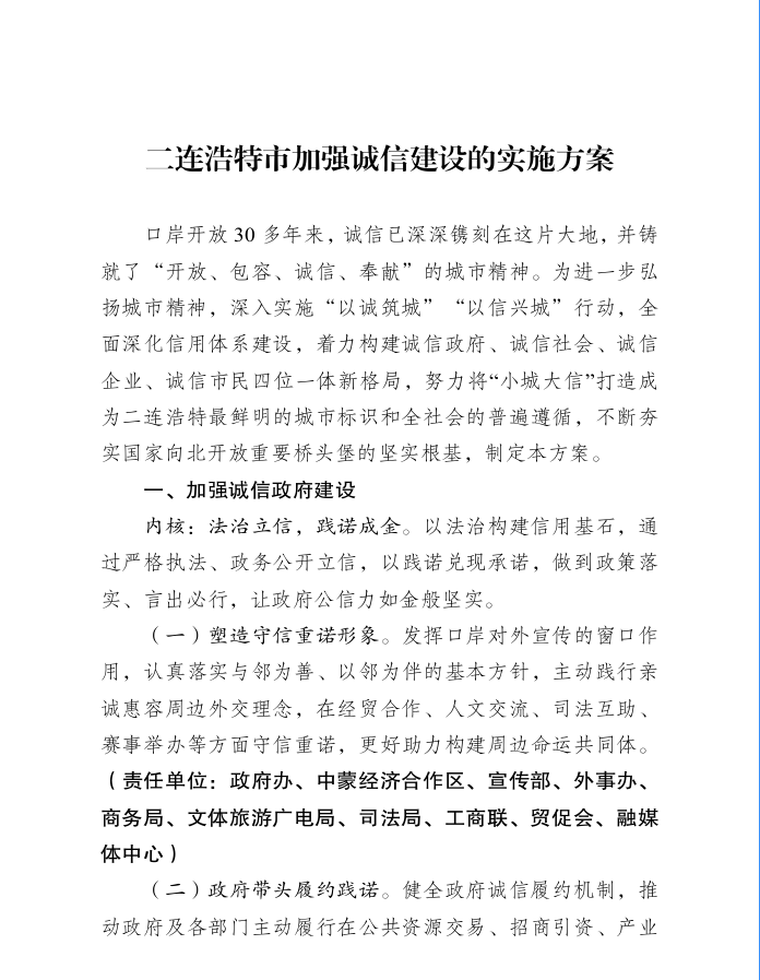 《二連浩特市加強(qiáng)誠信建設(shè)的實(shí)施方案》