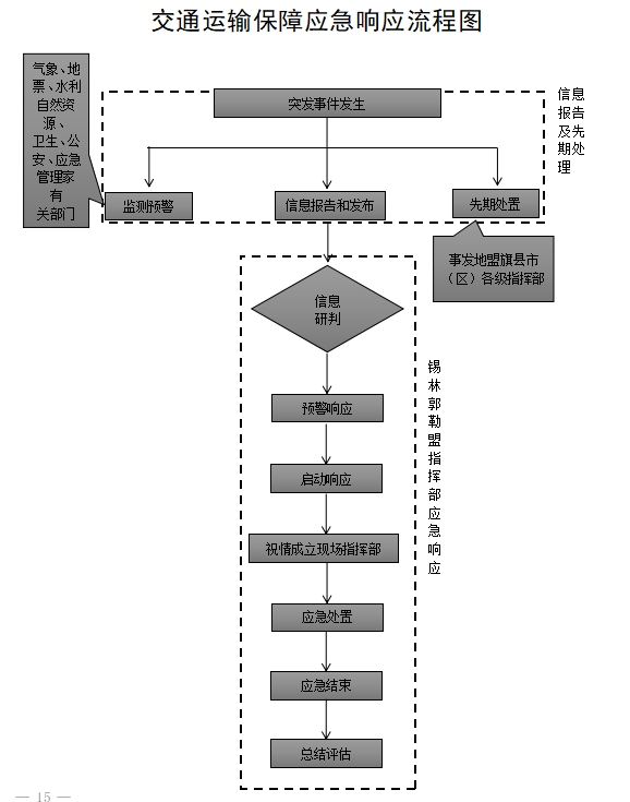 (3)向錫林郭勒盟委、行署和交通運輸局及錫林郭勒盟有關部門報告突發事件交通運輸保障工作情況,指導旗縣市(區)開展較大和一般突發事件交通運輸保障應急工作;