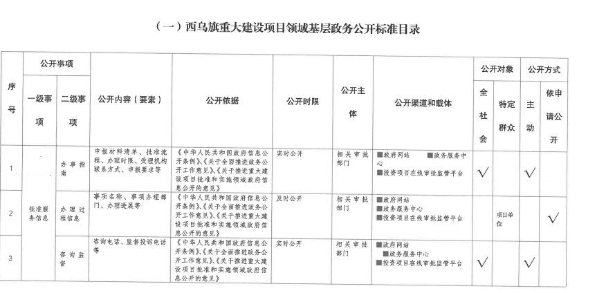 西烏旗重大建設項目領域基層政務公開標準目錄